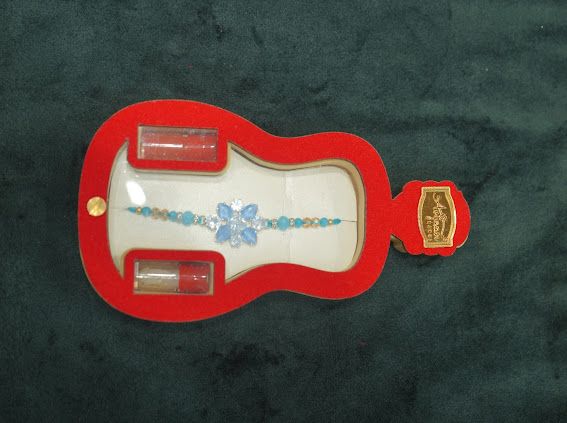 A blue flower style Rakhi with bottle style packaging Exclusive